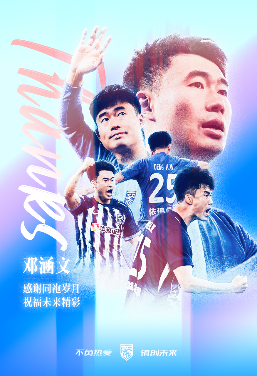 经与球员本人完成友好协商并达成共识,武汉三镇足球俱乐部确认球员邓涵文将于合同期满后正式离队。2022年4月,邓涵文正式加盟武汉三镇足球俱乐部,并在当赛季助力球队夺得队史首座中超联赛冠军奖杯。次年4月,他再次作为核心成员帮助球队斩获中国超级杯冠军。在为球队效力的四个赛季中,邓涵文累计出战各类赛事110场,贡献8粒进球及12次助攻,并于2025赛季达成个人代表三镇队出战100场的里程碑。俱乐部始终将续